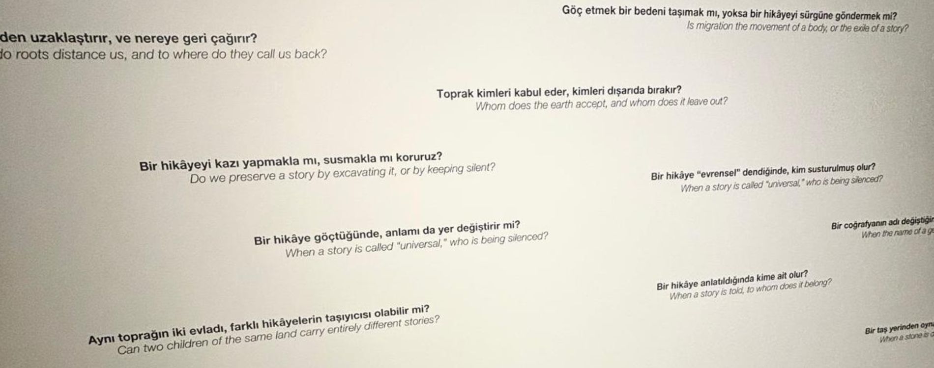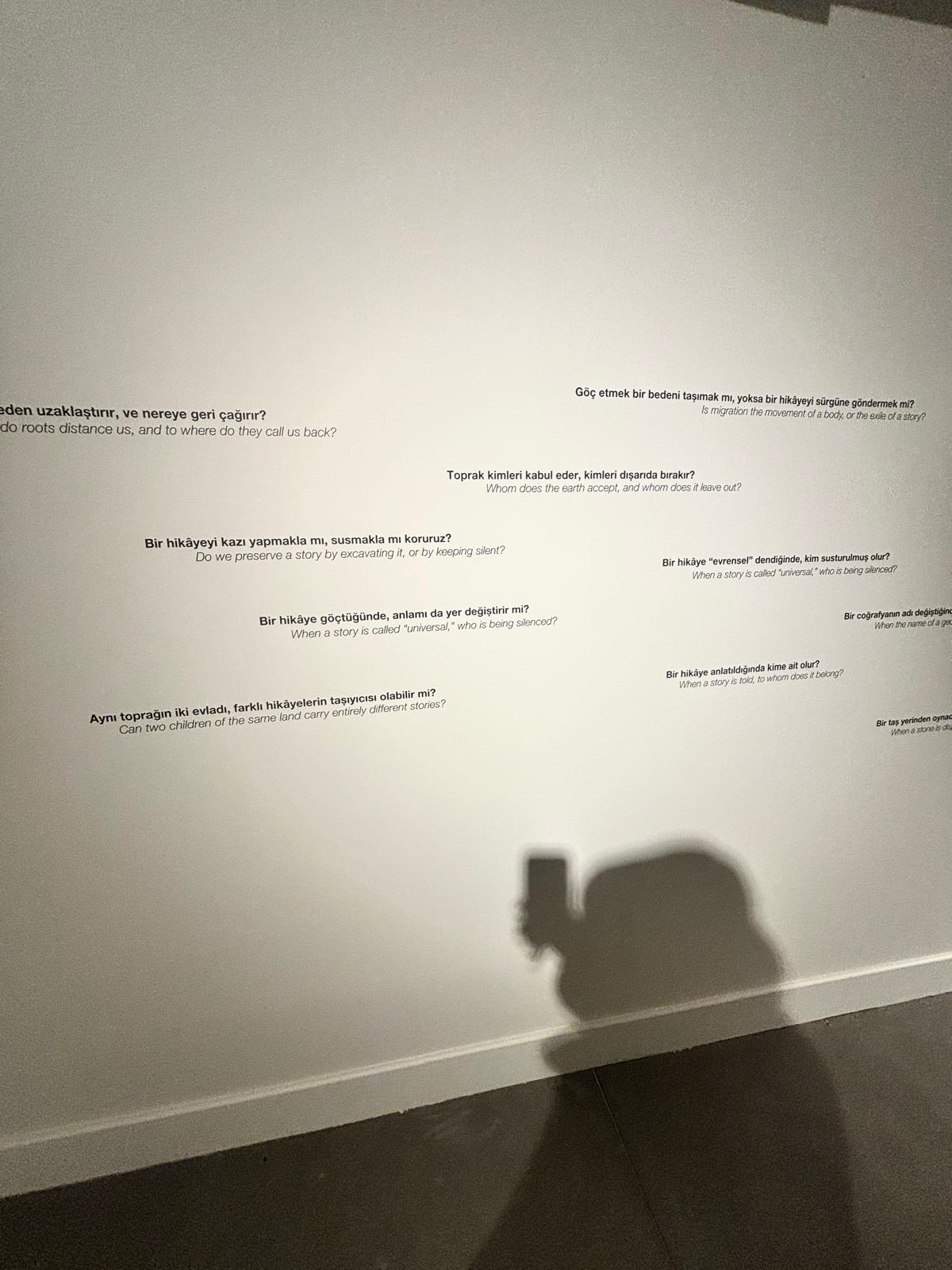 Diyarbakır’dan çıkan; biri kökleriyle birlikte göç eden, diğeri ise kalmayı seçen iki yol arkadaşı Esra ve Cengiz’in hazırladığı bir sergiydi burası ve şöyle diyorlardı;